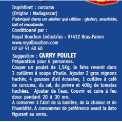 La poudre de curcuma est aussi appelée "safran peï" à l'île de la Réunion. On l'utilise dans la réalisation de tous les caris à base de viande ou de poisson. Cette épice apporte toutes les saveurs de la diversité culturelle de la Réunion.